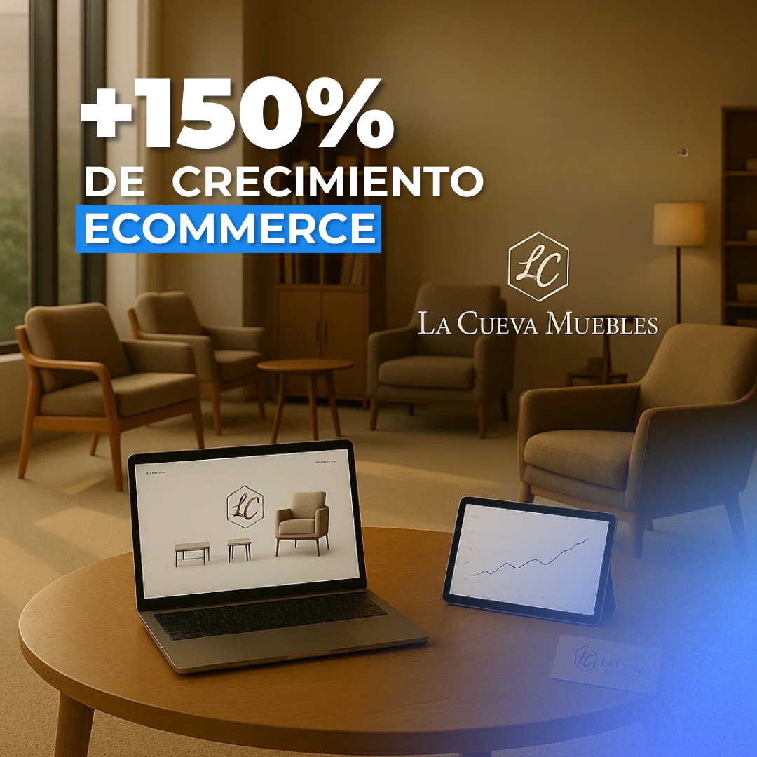 La Cueva Muebles tenía una propuesta de valor clara y gran potencial para mejorar las ventas de su ecommerce. Luego de trabajar juntos durante 12 meses, logramos un crecimiento de +150% en ventas online.